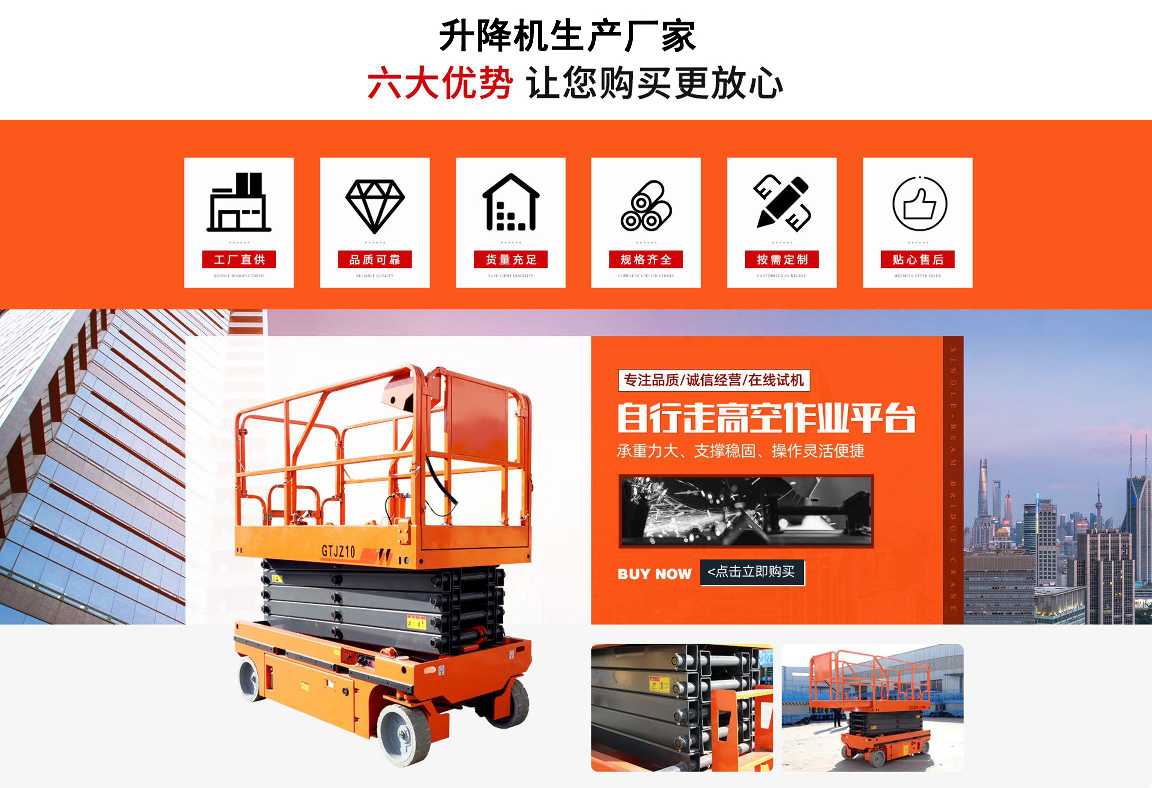 升降機(jī)生產(chǎn)廠家是專業(yè)從事升降平臺,液壓貨梯,卸豬臺,平板拖車,液壓提升機(jī),移動式升降機(jī),升降平臺車,高空作業(yè)設(shè)備,貨梯廠家,液壓登車橋等升降機(jī)械產(chǎn)品制造十余年,服務(wù)過各大國內(nèi)外企業(yè)?! ∽怨緞?chuàng)立以來,經(jīng)過長期對液壓升降臺的研制和探索,積累了豐富的專業(yè)制造技術(shù)和寶貴經(jīng)驗。憑借豐富的專業(yè)技術(shù)及不斷開拓創(chuàng)新的精神,現(xiàn)已成為專業(yè)于升降機(jī)械的公司?! ¢L期以來,憑借公司不斷的壯大及對液壓技術(shù)的不斷改進(jìn)和探索。能根據(jù)客戶不同的要求設(shè)計一套合理、完善的方案供客戶參考?,F(xiàn)有產(chǎn)品:升降平臺,液壓貨梯,卸豬臺,平板拖車,液壓提升機(jī),移動式升降機(jī),升降平臺車,高空作業(yè)設(shè)備,貨梯廠家,液壓登車橋等。本產(chǎn)品在各類工礦企業(yè)、港口物流以及其它領(lǐng)域均發(fā)揮著重要的作用。始終以“以信譽(yù)求生存、以技術(shù)求發(fā)展”為本廠的經(jīng)營理念。只要你選購我廠的產(chǎn)品,無論你身在何方都能得到我們迅捷優(yōu)良的服務(wù)。 公司自成立已經(jīng)來本著"團(tuán)結(jié)、求實、創(chuàng)新、互贏"的理念,以先進(jìn)的技術(shù)和服務(wù),為客戶建造滿意的產(chǎn)品。幾年來受到廣大客戶的好評。...